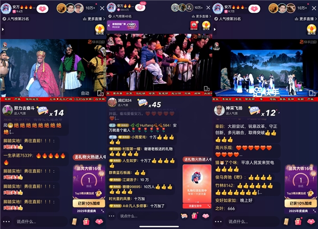 这种尝试也获取了年轻观众的认可,《三打白骨精》表演时,台下的年轻观众看得津津有味,而直播间中不时飘过“太攒劲了”“跟电影大片一样”的弹幕,年轻观众用自身的方法表达着对秦腔的喜爱。