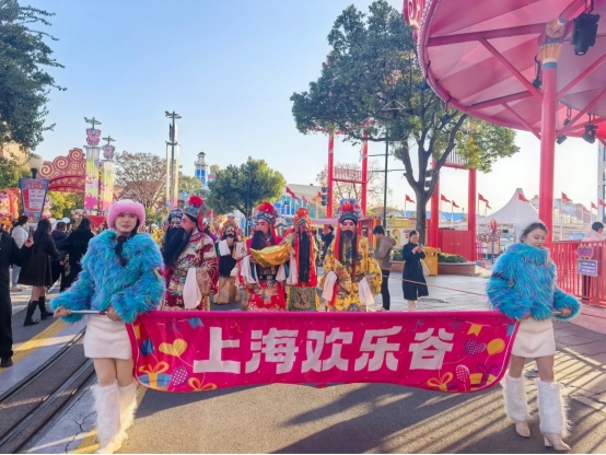 ▲安万剧团在欢乐谷开展花车巡游,招揽大量游客驻足